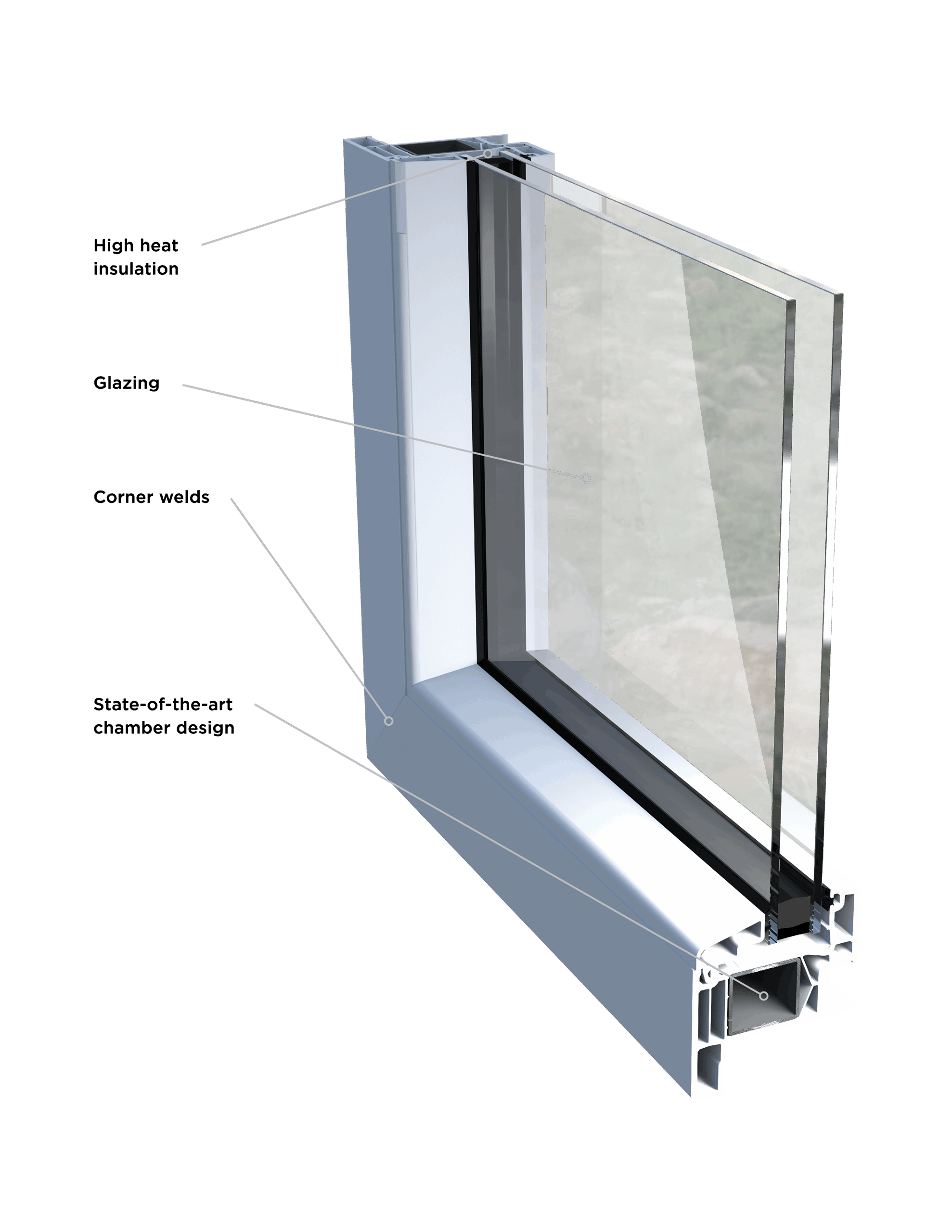 - Super thick profiles for maximum thermal insulation, high quality weather resistance, and strength in high wind zones